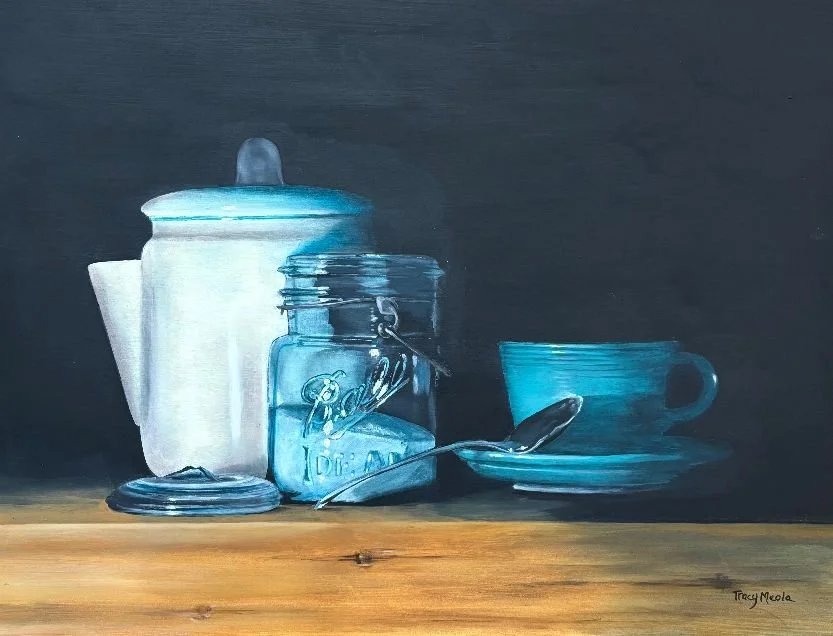 Every Fall I have to paint something that involves pumpkins, gourds or apples. I can’t look at these colors all around me and not be inspired to paint in them, and this year was no exception. I put together this little still life with some artificial decorations and a copper pitcher. I fell in love with the copper pitcher that I found at a Yard Sale (yard sales - another good thing about Fall). The painting is 8 x 10 and although I signed it, I don’t think I am finished with it. I may need to put it back on the easel and continue to work on it at some point. Happy Fall!